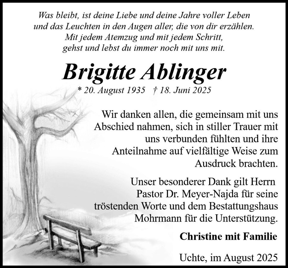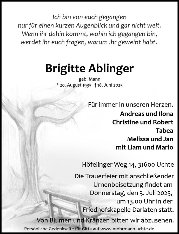 Brigitte Ablingergestorben am 18. Juni 2025