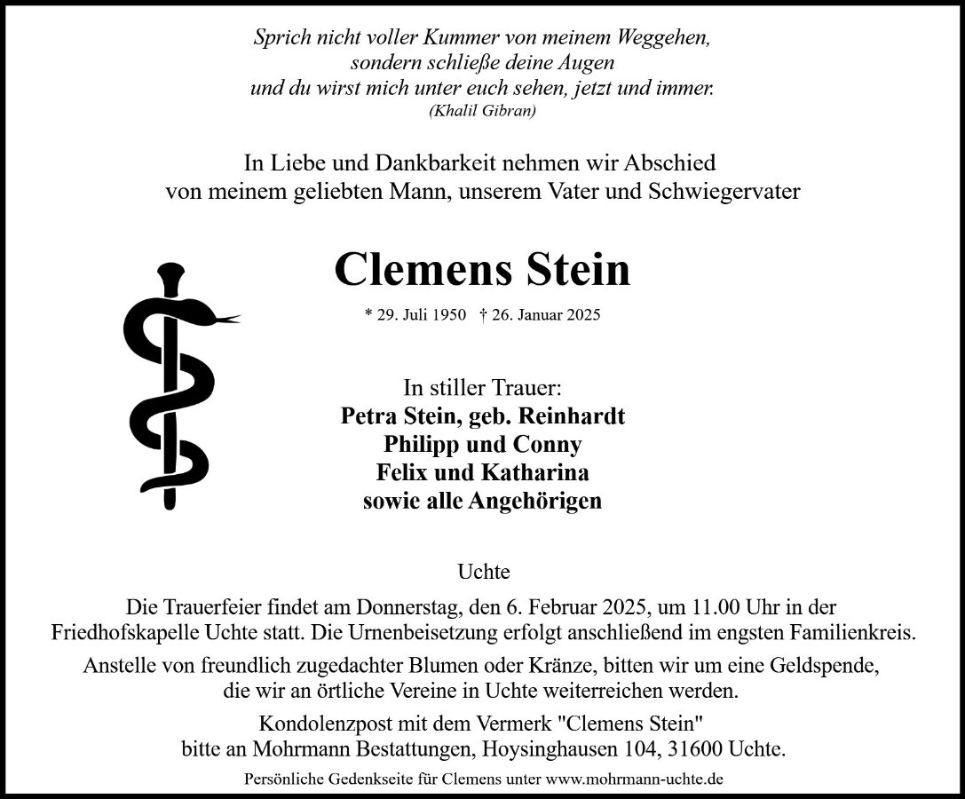 MEINE LIEBE PETRA, PHILIPP UND CONNY, FELIX UND KATARINA, BITTE NEHMEN SIE MEIN AUFRICHTIGES BEILEID AN. ICH KANN MIR VORSTELLEN, WIE SCHWER DAS FÜR SIE IST. DAS IST EIN UNERSETZLICHER VERLUST. FÜR MICH WAR ES EIN SCHWERER SCHLAG, ALS ICH ES HERAUSFAND. UND ICH KANN IMMER NOCH NICHT GLAUBEN, DASS CLEMENS WEG IST. ICH FÜHLE MICH GROSSARTIG FÜR IHRE WUNDERBARE FAMILIE, IN DER ICH ZU CLEMENS‘ LEBENSZEITEN GERNE LEBEN DARF. IN DIESER KURZEN ZEIT BIST DU MIR SO LIEB UND NAH GEWORDEN, DESHALB BIN ICH SEHR TRAURIG DARÜBER. ICH HABE SO VIELE SCHÖNE ERINNERUNGEN AN DICH, DIE FÜR IMMER IN MEINEM HERZEN UND IN MEINER ERINNERUNG GEBLIEBEN SIND! CLEMENS WIRD UNS IMMER IN GUTER ERINNERUNG BLEIBEN! KÖNIGREICH DES HIMMELS FÜR CLEMENS! 🙏🕯
