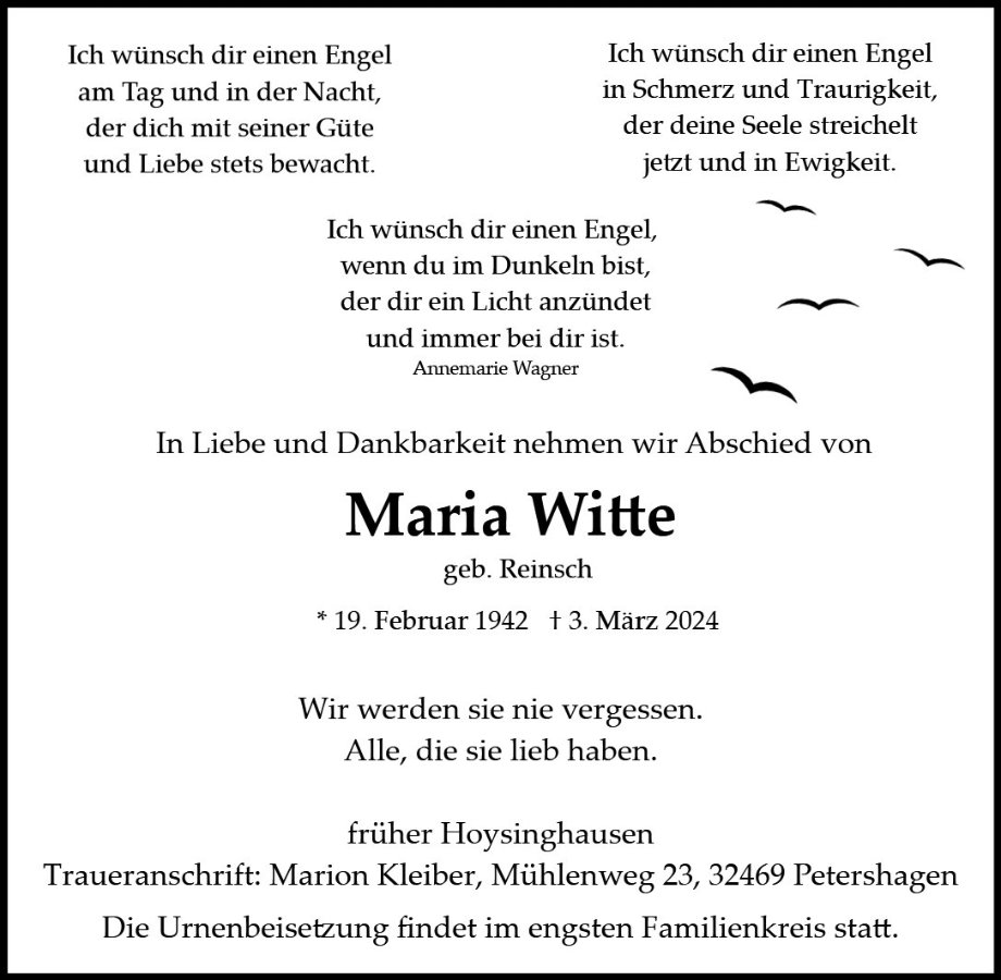 Maria Witte gestorben am 3. März 2024