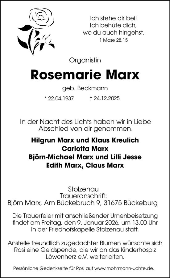 Trauerfeier mit anschließender Urnenbeisetzung, Friedhof Stolzenau
